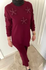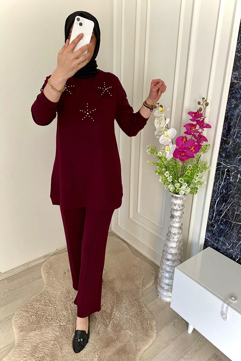 2’li Yıldızlı Taş İncili Bordo Takımı