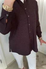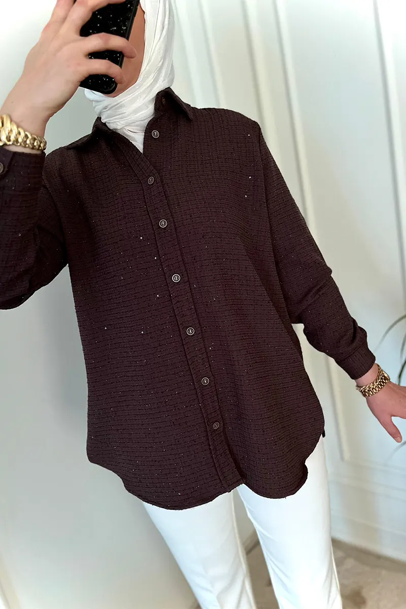 Simli Kahverengi Gömlek